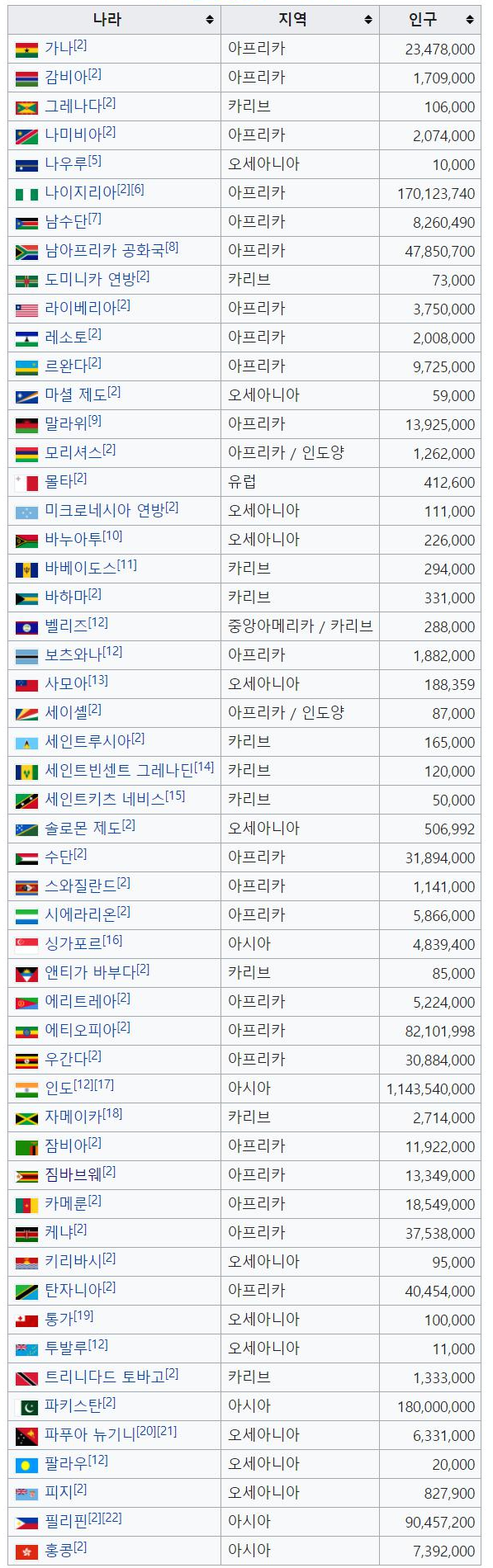 영어를 자기 나라말 못지않게 공용어로 자유자재로 쓰는 나라도 꽤 된다. 우리나라에서도 영어를 배우긴 하지만 그냥 외국어이지 공용어는 아니다. 어쨌건 남미의 가이아나를 포함하여 영어를 모국어로 쓰는 나라 7개 국가를 제외하고 법적 공용어로 쓰는 나라는 53개국으로 본다. 2019년 기준으로 대략 12억 6,000만명으로 추산한다.