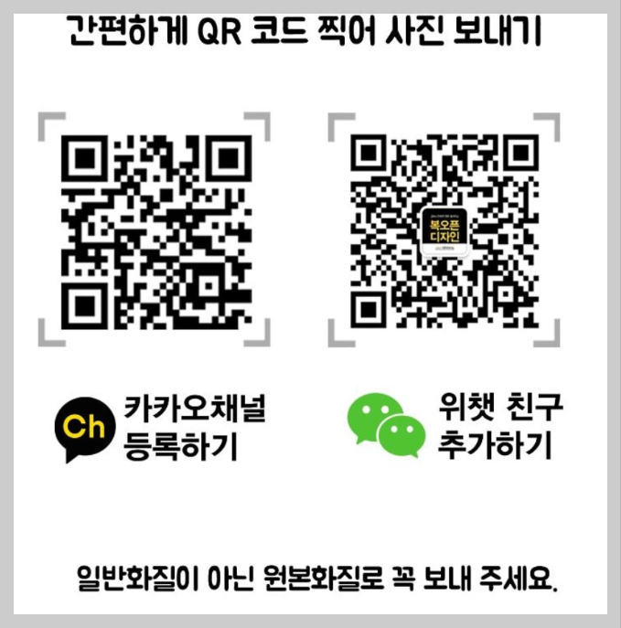 카카오채널에서 복오픈디자인이라고 검색을 하셔서 채널 등록 후 그림 파일을 보내시면 됩니다.