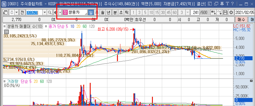 '쌍용차'라는 글자 앞에 빨간색으로 '정'자가 보일 것이다. 이는 '거래정지'를 의미하는데, 쌍용차는 경영악화로 인해 은행에서 빌린 600억 원 때문에 기업회생절차를 신청하면서 2020년 12월 21일부로 주식 '거래정지' 명령을 받았다. '거래정지'가 되려면 여러 가지 요건이 있는데, 반드시 해야 하는 중요한 공시를 제대로 하지 않았거나, 기업이 부실하거나, 투자경고를 받고도 주가가 너무 급등하거나 등등 요건들을 일일이 열거할 순 없지만, 위험요소가 있으니 일단 거래를 정지시키는 것이다. '쌍용차'의 경우, 아직 법원의 결정이 남아 있는데, 만일 파산 결정이 나면 상폐의 사유가 되고, 이해 관계자들과의 합의가 이루어진다면 다시 거래는 재개될 수 있다.