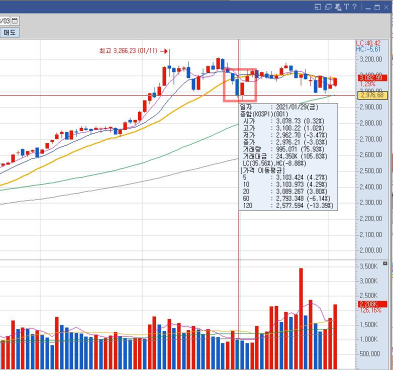 코스피 3000 '붕괴'…파티 끝났나, 건강한 조정인가 , 외국인과 기관의 매도세에 밀려 2976.13에 마감 "외국인의 대규모 순매도 지속"